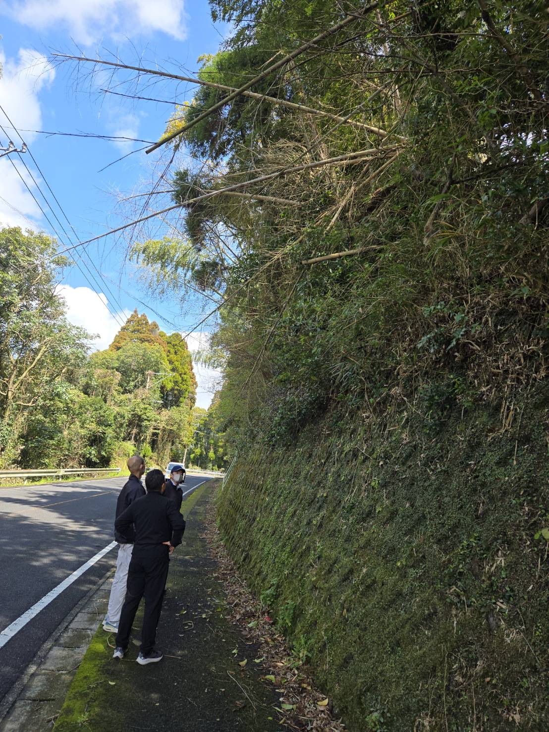 ご覧の通り、道路に面した竹が枯れ落ちてきてしまいそうな現場です。